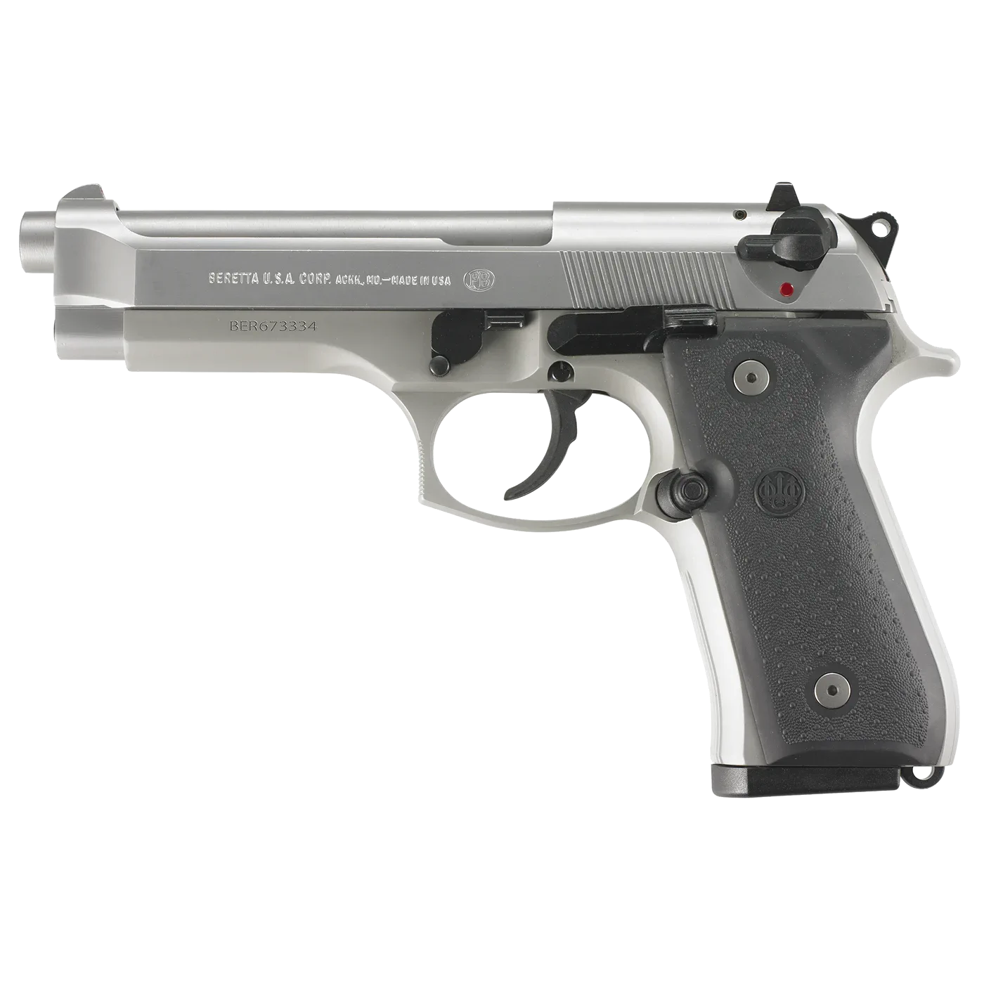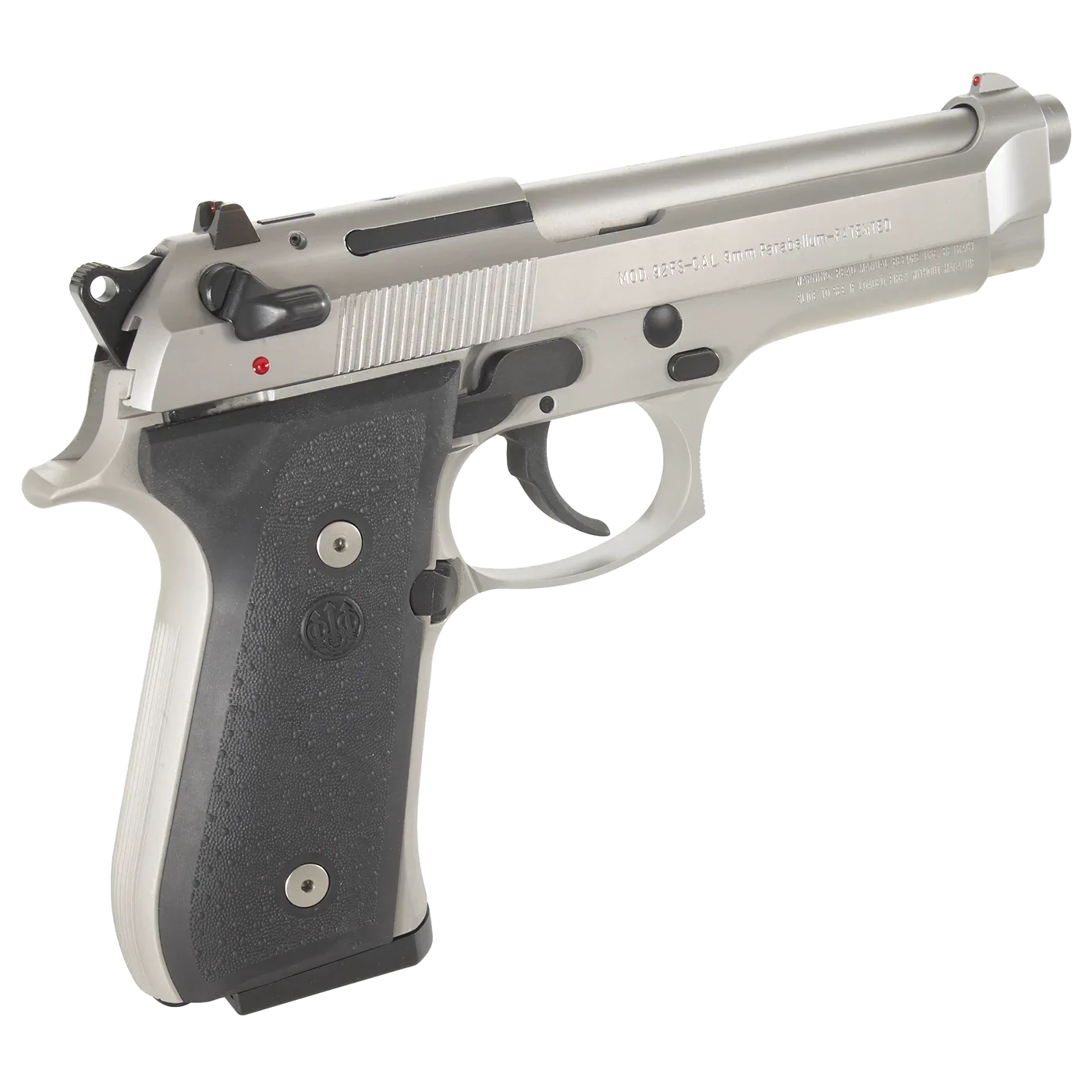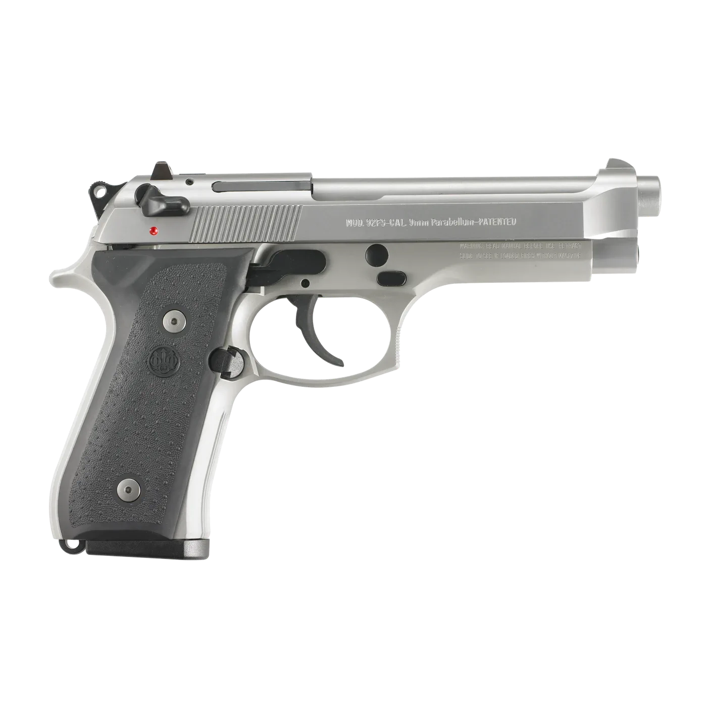 Pistolet Beretta 92FS INOX to jedna z najbardziej rozpoznawalnych wersji pistoletu Beretta 92, produkowana przez włoską firmę Beretta. Model 92FS INOX wyróżnia się wykończeniem ze stali nierdzewnej (INOX), co zapewnia większą odporność na korozję oraz atrakcyjny wygląd. Konstrukcja modelu 92FS INOX jest wykonana ze stali nierdzewnej, zarówno rama, zamek, jak i lufa. Lufa pistoletu ma długość 125 mm (4,9 cala), a całkowita długość wynosi 217 mm (8,5 cala). Wysokość pistoletu to 137 mm (5,4 cala), szerokość 38 mm (1,5 cala), a waga wynosi około 945 g (bez magazynka). Standardowy magazynek tego pistoletu mieści 15 nabojów. Beretta 92FS INOX działa na zasadzie krótkiego odrzutu lufy i jest półautomatycznym pistoletem z mechanizmem SA/DA (Single Action/Double Action). Pistolet jest wyposażony w manualny bezpiecznik z możliwością blokady zamka oraz bezpiecznik wewnętrzny zapobiegający przypadkowemu wystrzałowi. Model ten posiada stały celownik przedni z czerwoną kropką oraz regulowany celownik tylny z dwiema czerwonymi kropkami. Ergonomicznie zaprojektowany chwyt z antypoślizgowymi okładzinami zapewnia pewny chwyt. Oburęczne dźwignie bezpiecznika oraz zwalniacza zamka ułatwiają użytkowanie zarówno dla osób prawo- jak i leworęcznych.
