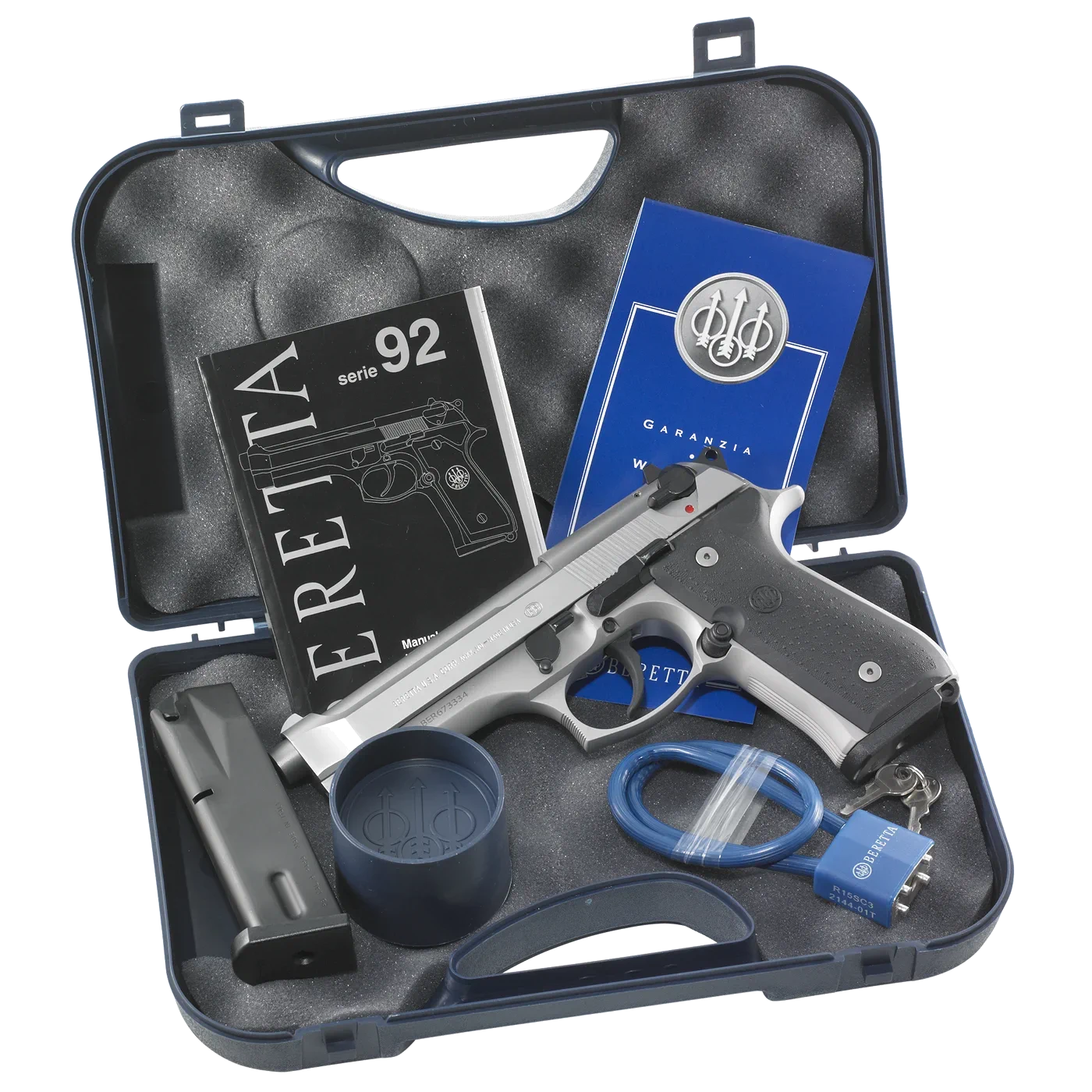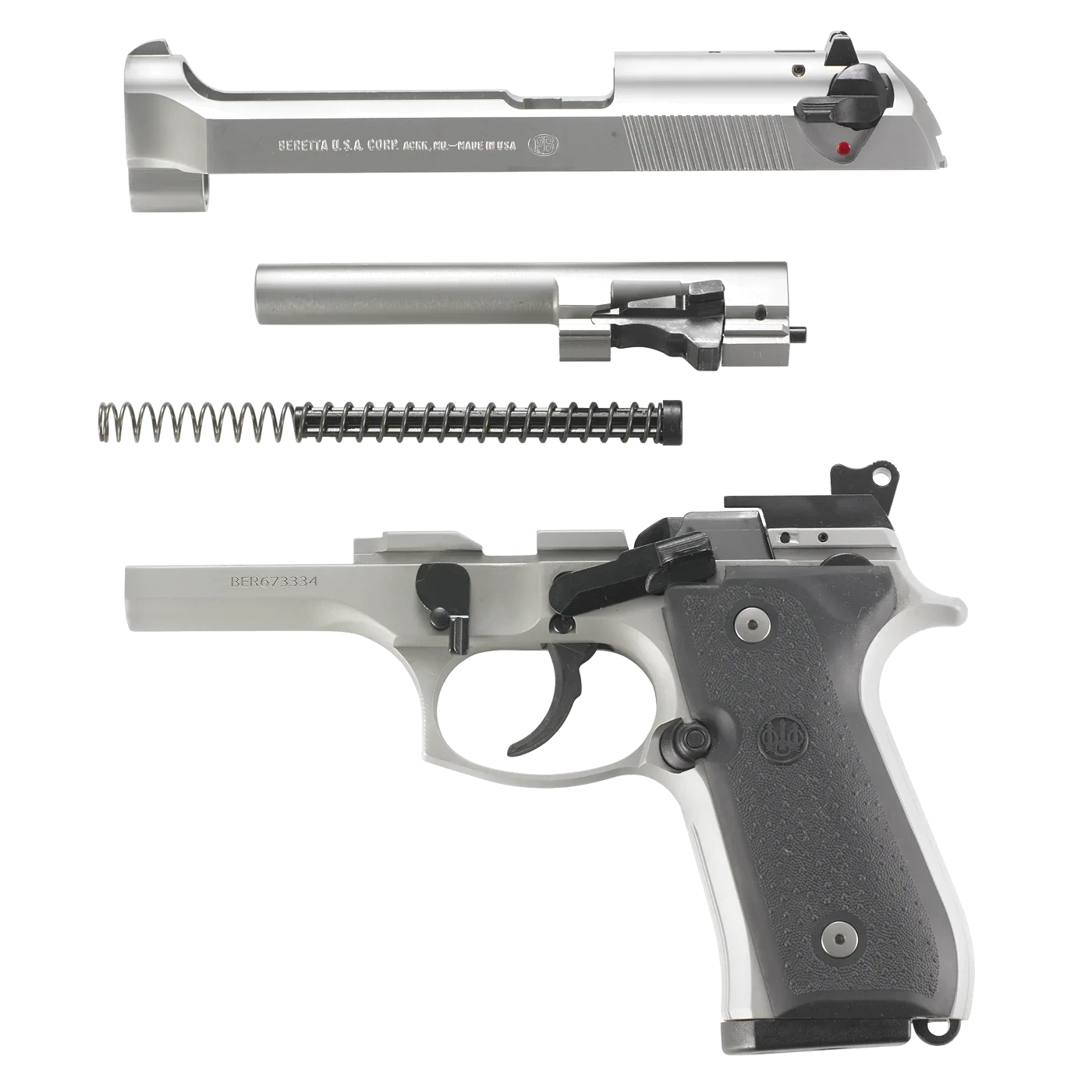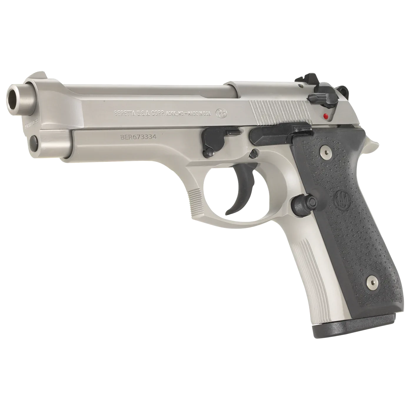 Pistolet Beretta 92FS INOX to jedna z najbardziej rozpoznawalnych wersji pistoletu Beretta 92, produkowana przez włoską firmę Beretta. Model 92FS INOX wyróżnia się wykończeniem ze stali nierdzewnej (INOX), co zapewnia większą odporność na korozję oraz atrakcyjny wygląd. Konstrukcja modelu 92FS INOX jest wykonana ze stali nierdzewnej, zarówno rama, zamek, jak i lufa. Lufa pistoletu ma długość 125 mm (4,9 cala), a całkowita długość wynosi 217 mm (8,5 cala). Wysokość pistoletu to 137 mm (5,4 cala), szerokość 38 mm (1,5 cala), a waga wynosi około 945 g (bez magazynka). Standardowy magazynek tego pistoletu mieści 15 nabojów. Beretta 92FS INOX działa na zasadzie krótkiego odrzutu lufy i jest półautomatycznym pistoletem z mechanizmem SA/DA (Single Action/Double Action). Pistolet jest wyposażony w manualny bezpiecznik z możliwością blokady zamka oraz bezpiecznik wewnętrzny zapobiegający przypadkowemu wystrzałowi. Model ten posiada stały celownik przedni z czerwoną kropką oraz regulowany celownik tylny z dwiema czerwonymi kropkami. Ergonomicznie zaprojektowany chwyt z antypoślizgowymi okładzinami zapewnia pewny chwyt. Oburęczne dźwignie bezpiecznika oraz zwalniacza zamka ułatwiają użytkowanie zarówno dla osób prawo- jak i leworęcznych.