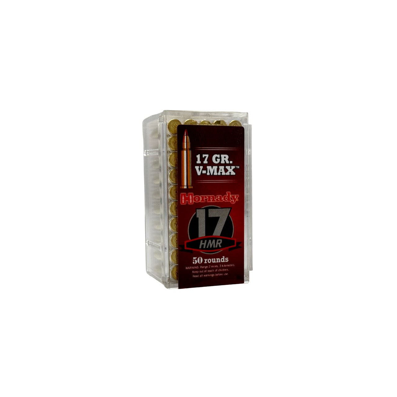 Hornady .17HMR V-Max to pocisk przeznaczony do zwalczania szkodników, szybko fragmentujący, został specjalnie zaprojektowany z opływowym kształtem oraz matchowym płaszczem zakończonym ostrym polimerowym czubkiem, co zapewnia doskonałą celność na każdą odległość oraz wybuchową ekspansję nawet przy niskich prędkościach. Ołowiany rdzeń otacza trzon czubka, a puste wgłębienie pod nim pozwala czubkowi zgromadzić energię przed przebiciem się do środka, powodując natychmiastową fragmentację rdzenia i płaszcza. Płaszcz wykonany jest w technologii AMP (Advanced Manufacturing Process - Zaawansowany proces produkcyjny).