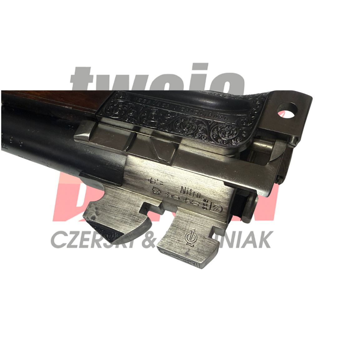 Bok Merkel 303, kal. 12/70 to wysokiej klasy kolekcjonerska strzelba śrutowa łącząca niemiecką precyzję wykonania z eleganckim, klasycznym stylem. Wyposażona w pełne zamki zapewnia trwałość, niezawodność oraz odporność na trudne warunki użytkowania, a poczwórne ryglowanie gwarantuje większą wytrzymałość konstrukcji. Broń wyróżnia się wysokiej klasy drewnem orzechowym, starannie wykończonym dla lepszego chwytu i estetyki, oraz dekoracyjnymi grawerunkami na baskili, które podkreślają jej łowiecki charakter. Dostępna w popularnym kalibrze 12/70, stanowi połączenie funkcjonalności, trwałości i elegancji.