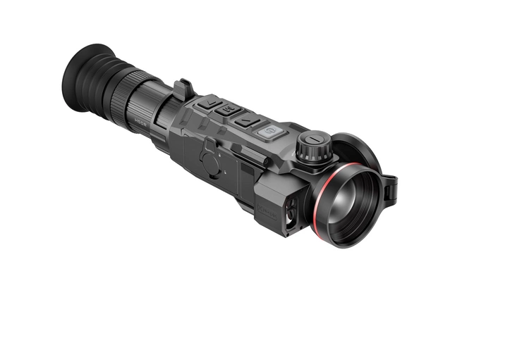 Celownik termowizyjny Nocpix RICO 2 H50R z dalmierzem – termowizyjny celownik łowiecki wyposażony w matrycę drugiej generacji 640×512 px (12 µm, 60 Hz, NETD ≤15 mK), obiektyw 50 mm F1,0 oraz zintegrowany dalmierz laserowy o zasięgu 1200 m z automatycznymi kalkulacjami balistycznymi. Płynna regulacja zoomu w stylu LPVO (3–24×) i zasięg detekcji do 2597 m czynią go idealnym narzędziem do precyzyjnych polowań na duże odległości.