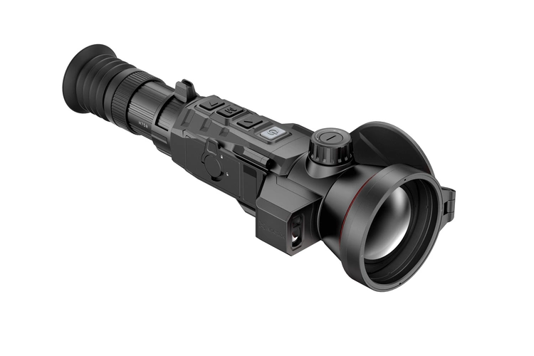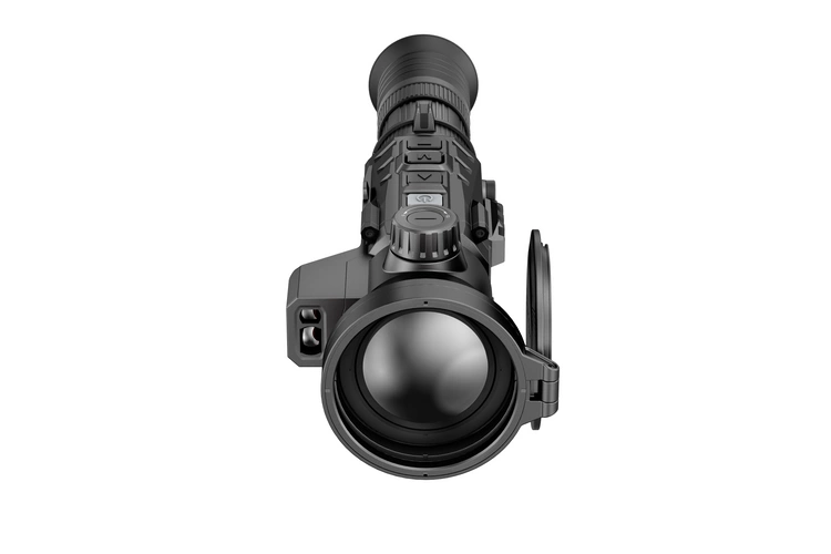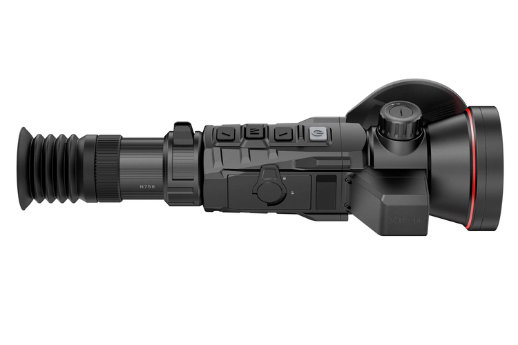 Celownik termowizyjny Nocpix RICO 2 H75R z dalmierzem – termowizyjny celownik łowiecki wyposażony w matrycę drugiej generacji 640×512 px (12 µm, 60 Hz, NETD ≤15 mK), obiektyw 75 mm F1,0 oraz zintegrowany dalmierz laserowy o zasięgu 1200 m z automatycznymi kalkulacjami balistycznymi. Płynna regulacja zoomu LPVO (4–32×) i imponujący zasięg detekcji do 3896 m czynią go idealnym narzędziem do precyzyjnych polowań na bardzo duże odległości.