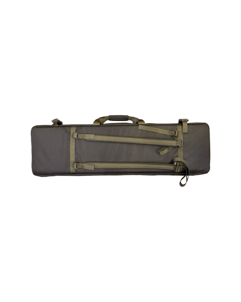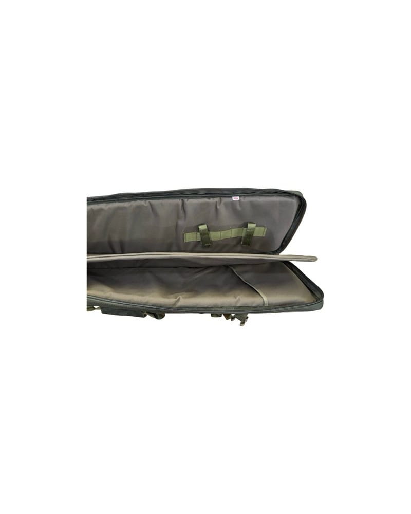 Pokrowiec Garbacz Tactical 3 Green to praktyczne i solidne rozwiązanie przeznaczone do bezpiecznego przenoszenia dwóch jednostek broni, wyposażony jest w wewnętrzną przegrodę, która oddziela broń i zwiększa ochronę podczas transportu. Konstrukcja w formie plecaka zapewnia wygodę noszenia oraz swobodę ruchu. Z przodu znajdują się trzy pojemne kieszenie o wymiarach 22 × 24 cm oraz jedna mniejsza kieszeń 22 × 10 cm, wszystkie zamykane na suwaki, co ułatwia organizację akcesoriów. Futerał wykonano z wytrzymałej, nieprzemakalnej tkaniny PVC, odpornej na warunki atmosferyczne. Na przedniej kieszeni umieszczono panel z rzepem umożliwiający mocowanie patchy i oznaczeń. Zastosowano wysokiej jakości zamki błyskawiczne firmy Kroko, a wszystkie elementy plastikowe pochodzą od renomowanego producenta ITW Nexus, co gwarantuje trwałość i niezawodność produktu.