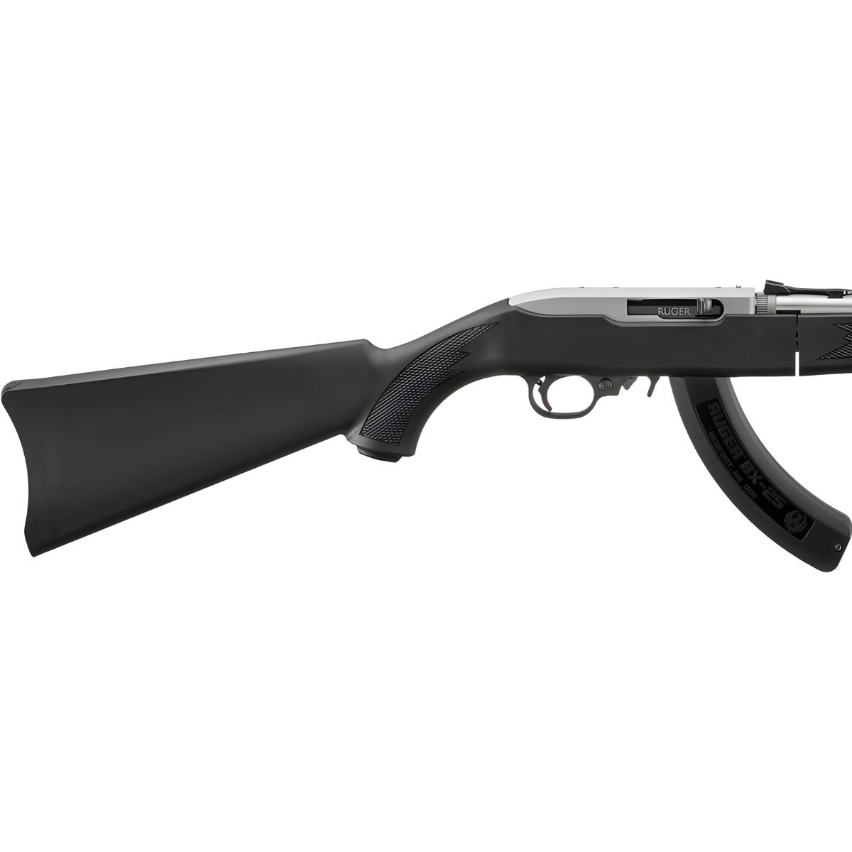 Karabinek posiada aluminiową szynę Picatinny/Weaver do montażu optyki, powiększoną matchową dźwignię zrzutu zamka, wydłużony zwalniacz magazynka oraz bezpiecznik umieszczony za kabłąkiem. Światłowodowe przyrządy celownicze – regulowana szczerbinka i stała muszka – zapewniają precyzyjne celowanie w każdych warunkach. Wykończenie lufy w satynowej stali nierdzewnej gwarantuje odporność na korozję. W zestawie znajduje się 1 magazynek 25-nabojowy.
