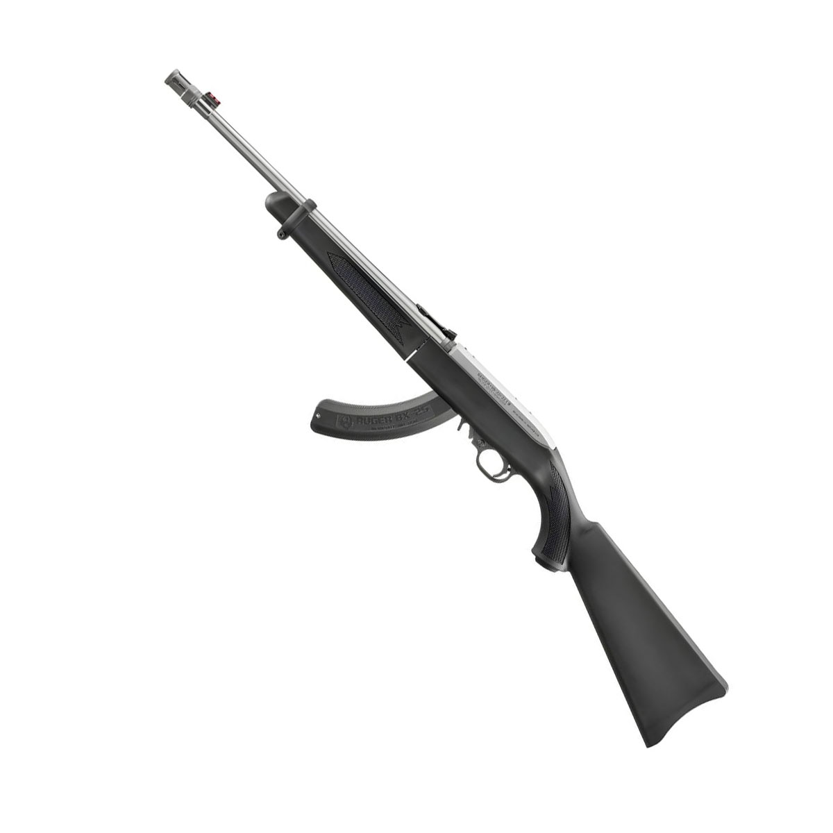 Karabinek Ruger 10/22 Takedown Synthetic SS Black 18,5" 32028 – półautomatyczny karabinek bocznego zapłonu w kalibrze .22LR z lufą ze stali nierdzewnej, syntetyczną kolbą, systemem szybkiego demontażu, regulowanym spustem BX-Trigger® oraz fabrycznym tłumikiem płomienia, łączący legendarną niezawodność Rugera z praktyczną modułową konstrukcją.