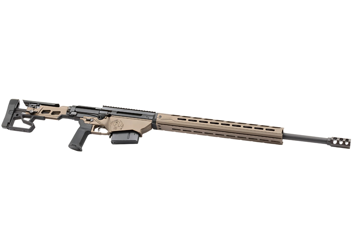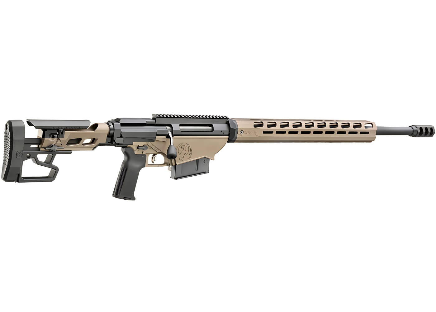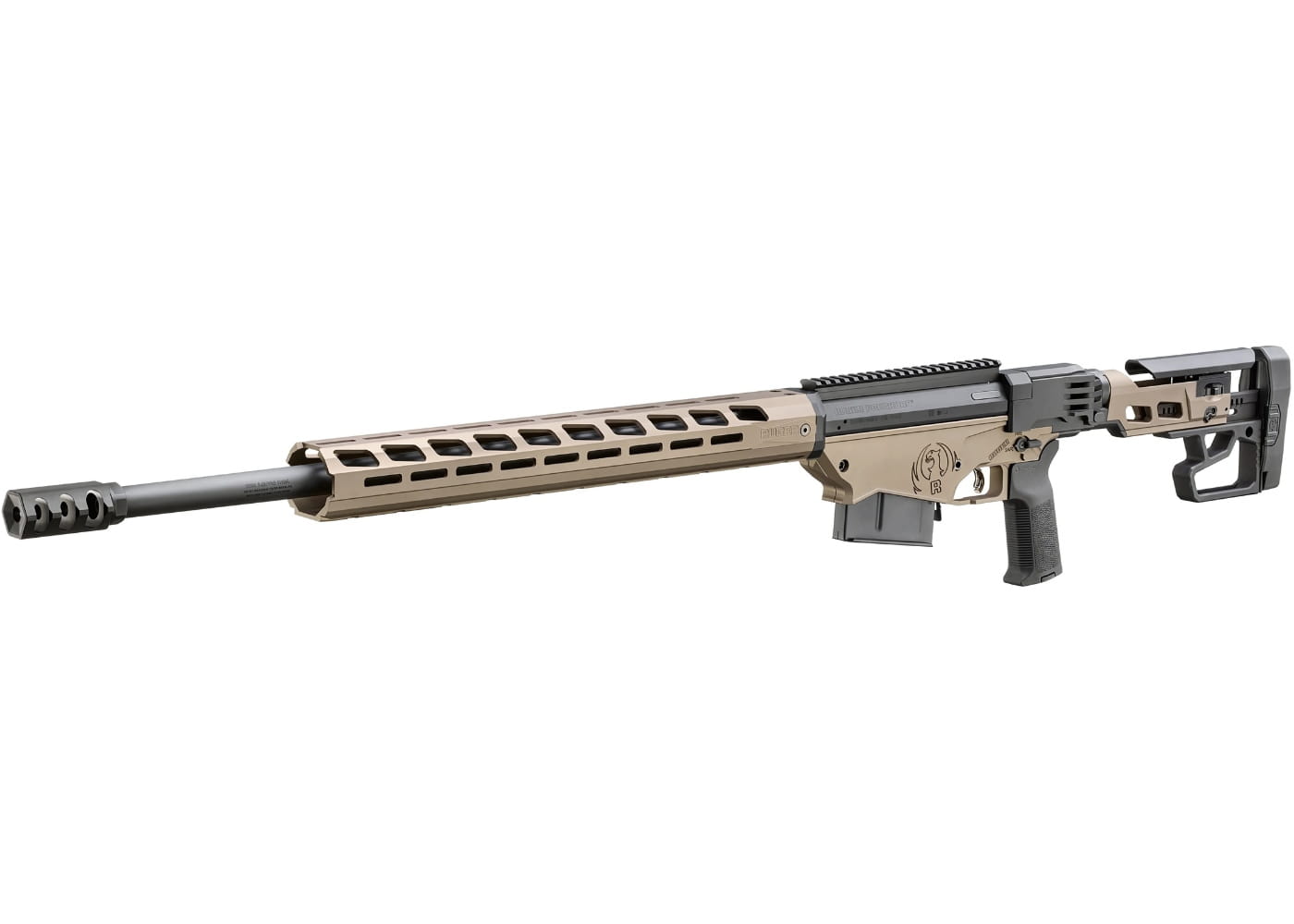 Na szczególną uwagę zasługuje opatentowany system wielomagazynkowy, który umożliwia stosowanie zarówno klasycznych magazynków AICS, jak i tych z platform AR-10 / SR-25 – bez potrzeby używania dodatkowych adapterów. Realizowane jest to poprzez podwójny system zatrzasków, sterowany jednym przyciskiem. Precyzyjnie kuta na zimno lufa zakończona jest hybrydowym hamulcem wylotowym Rugera, skutecznie redukującym odrzut i hałas. Karabin posiada 15-calowe aluminiowe łoże z systemem M-Lok, szynę Picatinny ze skosem 20 MOA, regulowany spust Ruger Marksman oraz profilowany przód komory magazynka, który może służyć jako stabilna podpora. W zestawie znajdują się dwa magazynki Magpul PMag o pojemności 10 nabojów.