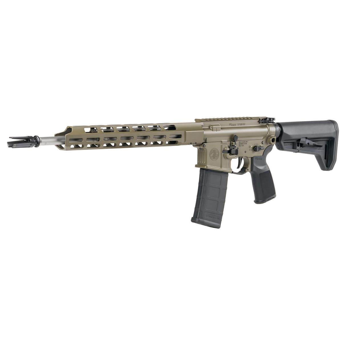 Karabinek Sig Sauer M400 Tread v2 Green to półautomatyczna broń samopowtarzalna klasy AR-15, przystosowana do amunicji 5,56x45 mm NATO (.223 REM). Wyposażony jest w kutą na zimno lufę o długości 16 cali zakończoną urządzeniem wylotowym oraz łoże z systemem montażowym M-Lok. Komora zamkowa została wykonana z aluminium 7075-T6 i wykończona anodowaniem dla zwiększonej odporności na korozję.