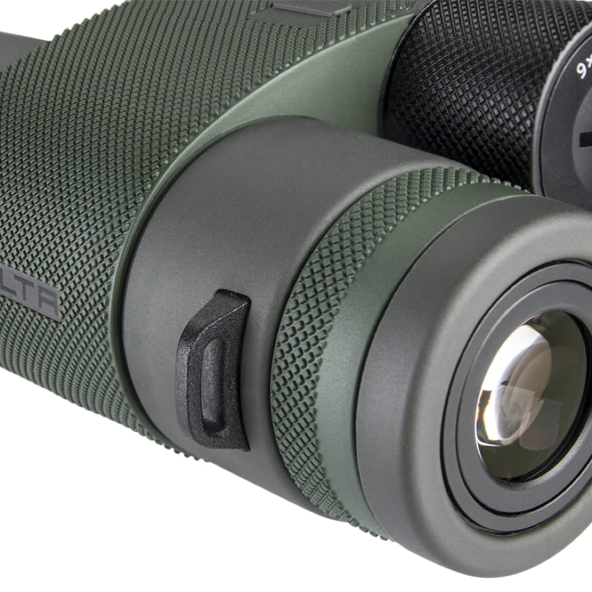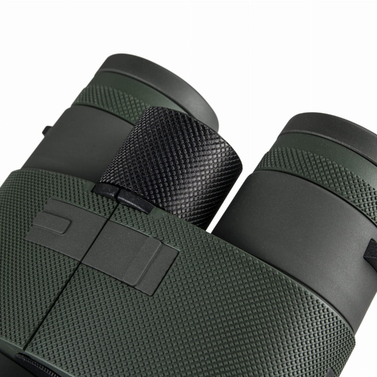 Korpus wykonany ze stopu magnezu zapewnia niską masę przy wysokiej wytrzymałości mechanicznej. Lornetka jest wodoszczelna w klasie IPX7 oraz wypełniona azotem, co chroni optykę przed zaparowaniem od wewnątrz. Centralny system ogniskowania oraz ergonomiczna konstrukcja gwarantują wygodę użytkowania w terenie.