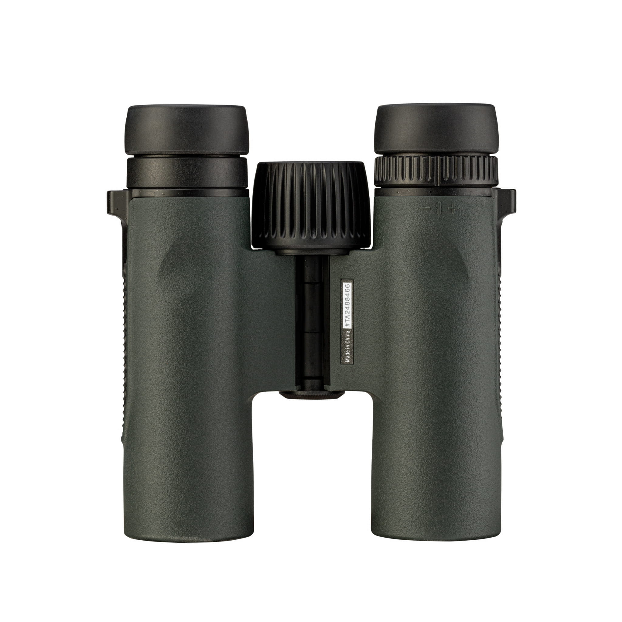 Konstrukcja została uszczelniona, co chroni wnętrze przed wodą i kurzem, a wypełnienie azotem zapobiega parowaniu optyki podczas niskich temperatur. Gumowana, antypoślizgowa obudowa zwiększa odporność na uszkodzenia i zapewnia pewny chwyt nawet w wilgotnych warunkach. Regulowane muszle oczne umożliwiają komfortowe korzystanie z lornetki także osobom noszącym okulary, a korekcja dioptrii pozwala precyzyjnie dopasować ostrość do indywidualnych potrzeb wzroku.
