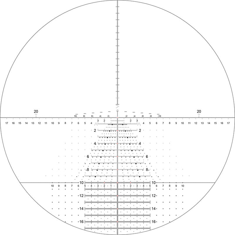 Krzyż Horus Tremor3™ został zaprojektowany z myślą o maksymalnej skuteczności w strzelaniu długodystansowym. Pływający punkt centralny umożliwia precyzyjne namierzenie celu bez zasłaniania punktu trafienia, a chevrony o rozdzielczości 0,1 MIL oraz subtensje 0,2 MIL zapewniają dokładne i powtarzalne trzymania elewacji oraz wiatru. Zintegrowane Rapid Range Bars i Wind Dots wspomagają szybkie szacowanie odległości i kompensację wpływu wiatru, co znacząco przyspiesza proces celowania. Dodatkowe podświetlenie siatki zwiększa czytelność i użyteczność krzyża w warunkach ograniczonego oświetlenia.