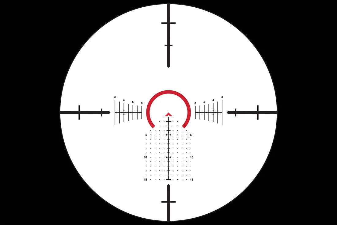 Wersja z umieszczoną w pierwszym planie podświetlaną siatką ACSS Griffin M8 MIL daje realne proporcje krzyża przy każdym powiększeniu, co ułatwia ocenę odległości i precyzyjne prowadzenie ognia; konstrukcja siatki zaprojektowana jest specjalnie do pracy w lunetach LPVO. ACSS Griffin M8 zawiera centralny chevron otoczony kontrastową, podświetlaną podkową dla błyskawicznego namierzania celów na bliskich dystansach oraz rozbudowaną podziałkę w miliradianach umożliwiającą obliczenia korekt i prowadzenie ognia korekcyjnego. Podświetlenie siatki pracuje w trybie zgodnym z noktowizją oraz jest wystarczająco jasne do użycia w pełnym nasłonecznieniu, co zwiększa uniwersalność użytkowania o każdej porze doby. Umiejscowienie krzyża w pierwszym planie optycznym minimalizuje rozpraszanie detali przy niskich powiększeniach i pozwala na szybkie przenoszenie wzroku pomiędzy celami, co docenią operatorzy i konkurenci dynamiczni. Kombinacja kompaktowej konstrukcji, zaawansowanej optyki i przemyślanej siatki czyni tę lunetę świetnym wyborem dla użytkowników oczekujących uniwersalności, niezawodności i ergonomii w wymagających scenariuszach.