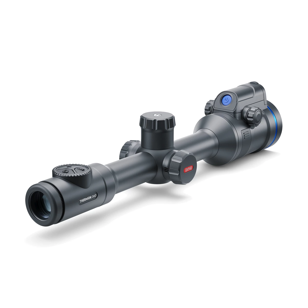 Luneta multispektralna Pulsar Thermion DUO DXP50 to pierwszy na świecie celownik multispektralny z dwoma niezależnymi kanałami – termowizyjnym (640x480, sNETD <18 mK, zasięg detekcji 1800 m) i dziennym CMOS 4K (3840x2160), z tubusem 30 mm, odpornością na odrzut 6000 J oraz rejestratorem 16 GB.