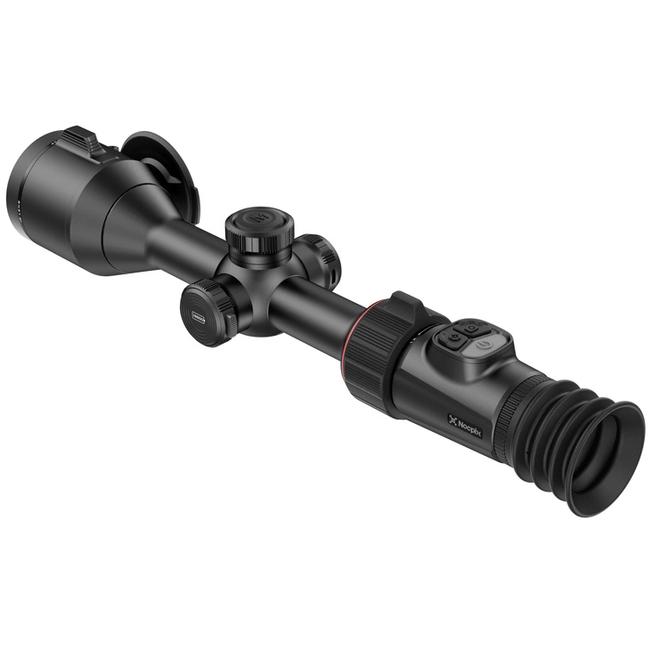 Celownik termowizyjny Nocpix Ace H50R z dalmierzem – flagowy celownik termowizyjny z matrycą Gen-2 HD 640×512 px (12 µm, 60 Hz, NETD ≤15 mK), obiektywem 50 mm F0,9 oraz zintegrowanym dalmierzem laserowym o zasięgu 1200 m z kalkulatorem balistycznym. Unikalne połączenie zoomu cyfrowego 3–24× i optycznego 1–3× z systemem Vision+ (AMOLED 2560×2560 px) zapewnia niezrównaną jakość obrazu i zasięg detekcji do 2600 m.