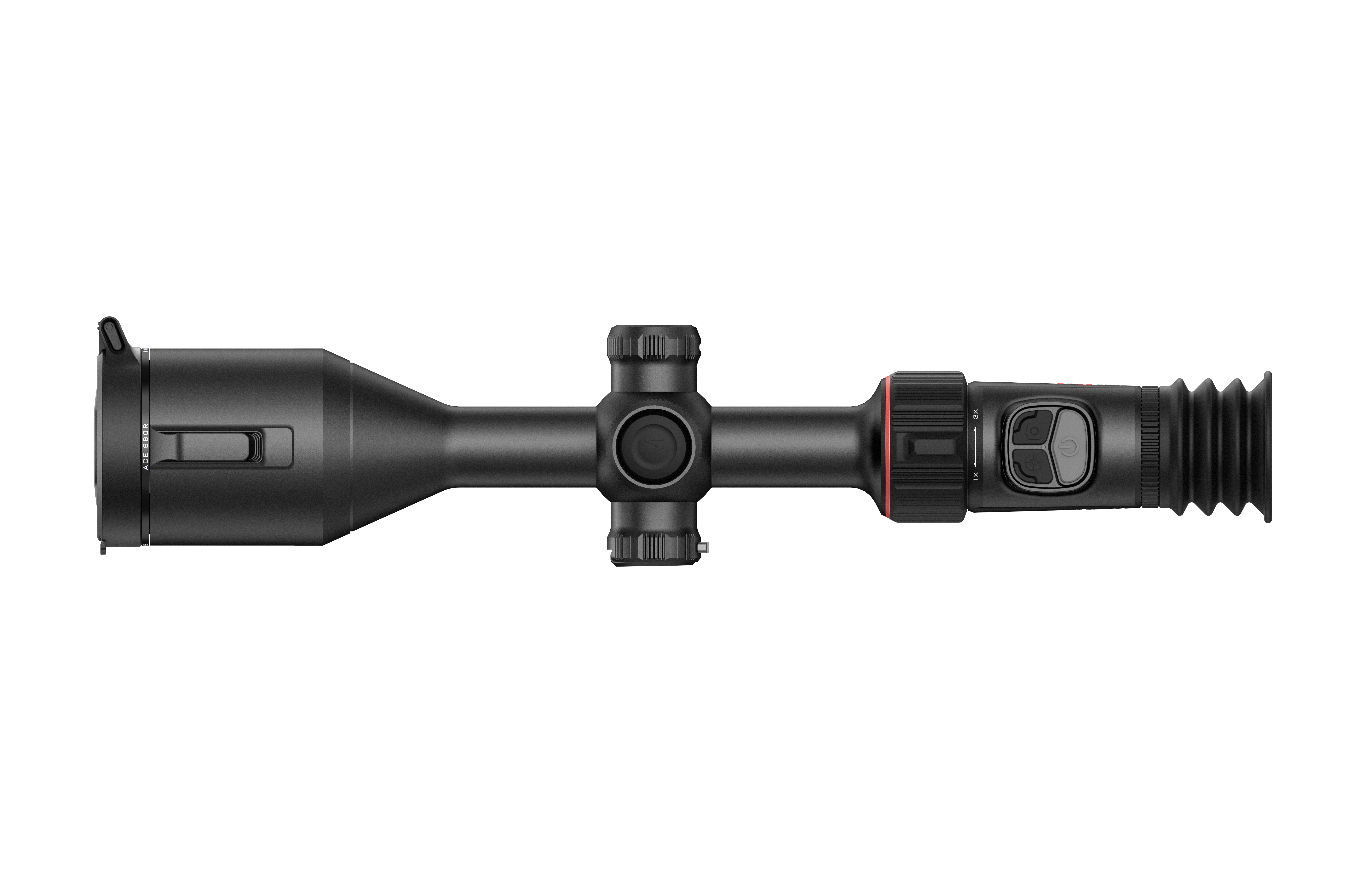 Celownik termowizyjny Nocpix Ace S60R z dalmierzem – flagowy celownik termowizyjny z matrycą Gen-2 HD 1280×1024 px (12 µm, 50 Hz, NETD ≤15 mK), obiektywem 60 mm F1,0 oraz zintegrowanym dalmierzem laserowym o zasięgu 1200 m z kalkulatorem balistycznym. Połączenie zoomu cyfrowego 2–24× i optycznego 1–3× z systemem Vision+ (AMOLED 2560×2560 px) i zasięgiem detekcji do 3100 m stawia go w czołówce celowników łowieckich.