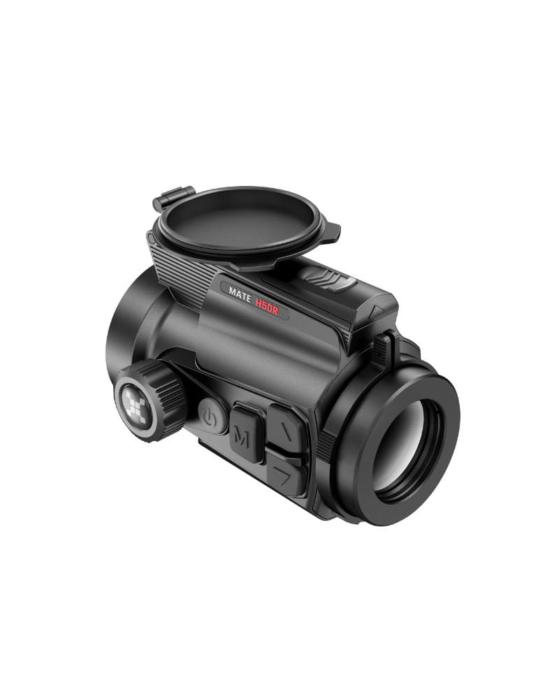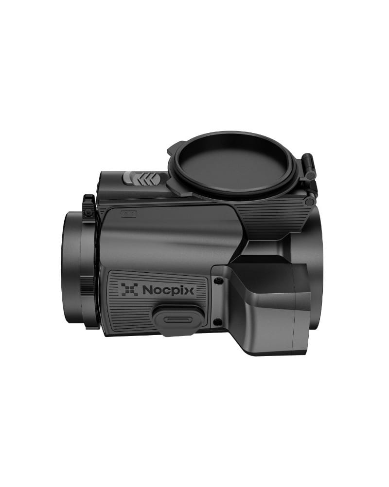 Nasadka termowizyjna Nocpix Mate H50R – zaawansowana nasadka termowizyjna z autorską matrycą 640×512 px (12 µm, 60 Hz, NETD ≤15 mK), obiektywem 50 mm F1,0 i zintegrowanym dalmierzem laserowym o zasięgu 1200 m z kalkulatorem balistycznym. Funkcja Magic Zoom, precyzja 1 MOA, obudowa magnezowa IP67 i zasięg detekcji do 2600 m czynią ją jedną z najwydajniejszych nasadek termowizyjnych na rynku.