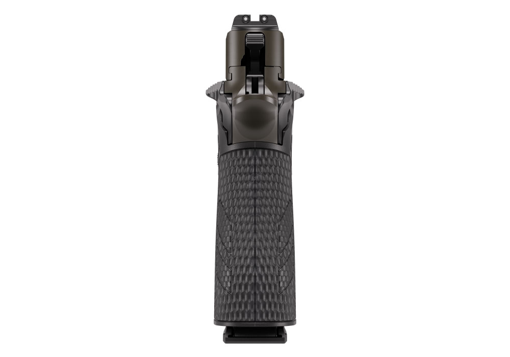 Konstrukcja P226-X Legion SAO łączy w sobie najlepsze cechy dwóch legendarnych linii Sig Sauer. Chwyt, okładziny G10, kabłąk spustu i ostroga pochodzą wprost z niezawodnego P226, natomiast kształt zamka z nacięciami w przedniej i tylnej części oraz przedłużona osłona przeciwkurzowa z szyną akcesoryjną nawiązują wyraźnie do serii P320. Całość tworzy spójną, ergonomiczną konstrukcję, która równie dobrze sprawdza się w strzelaniach statycznych na 25 m, jak i w dynamicznych zawodach IPSC czy IDPA.