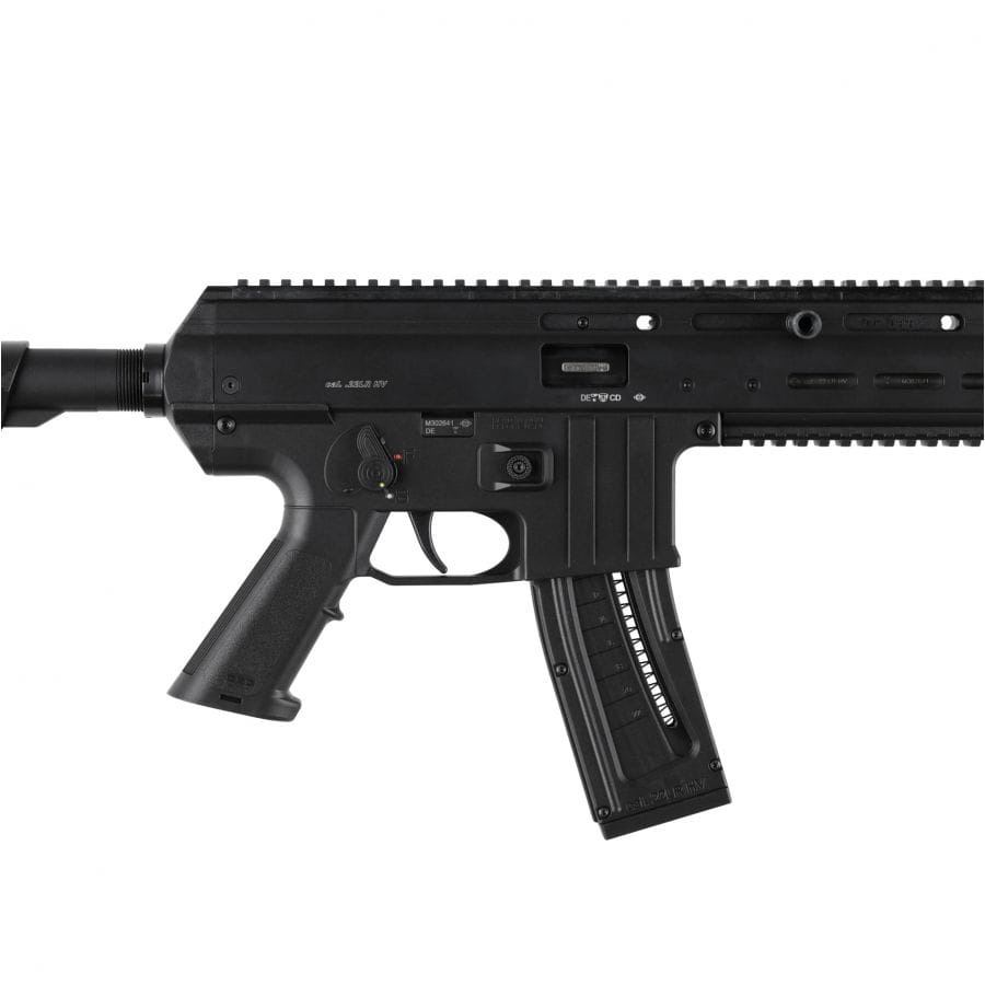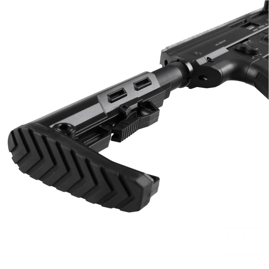 Zestaw Super Set zawiera dodatkowe akcesoria, takie jak kolimator typu ET oraz dwa magazynki – jeden klasyczny pudełkowy i drugi bębnowy o dużej pojemności, co czyni ten karabinek jeszcze bardziej wszechstronnym. W zestawie znajdują się także składane przyrządy celownicze typu flip-up, które pozostają funkcjonalne nawet podczas korzystania z optyki. Dzięki ergonomicznej kolbie z regulacją wysokości poduszki policzkowej, karabinek oferuje maksymalną wygodę i precyzję podczas strzelania.