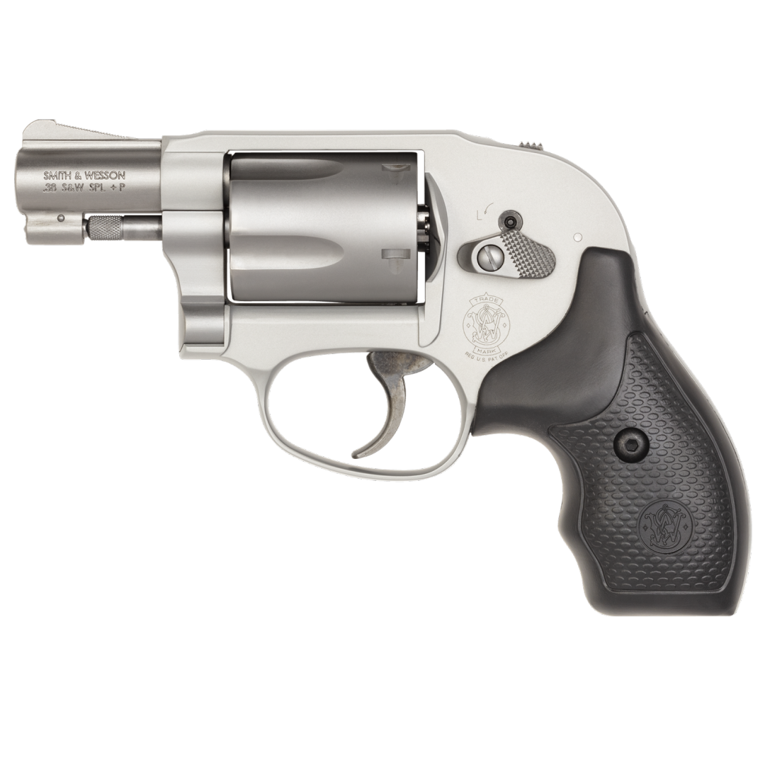 Rewolwer Smith & Wesson 638 z serii J-Frame, wyposażony w obudowany kurek, działanie DAO, aluminiową ramę i krótką lufę, jest kompaktowy, przeznaczony do noszenia w ukryciu i używania amunicji .38 S&W Special, idealny do obrony osobistej.